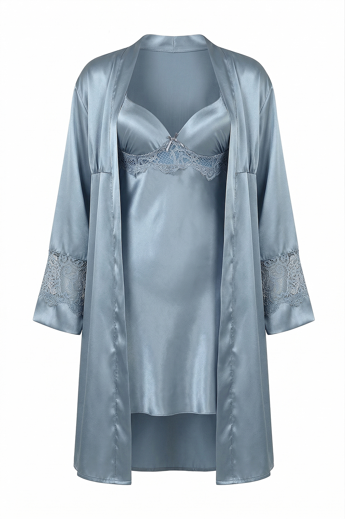 Dantel Detaylı Romantik Mini Saten Gecelik & Sabahlık Takımı (KUTULU) – Premium Koleksiyon