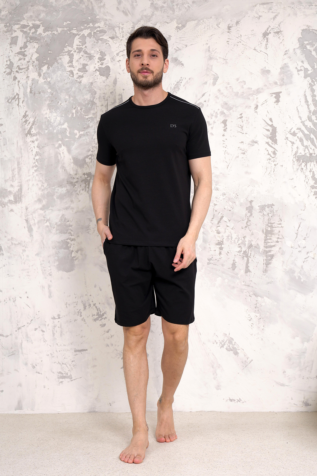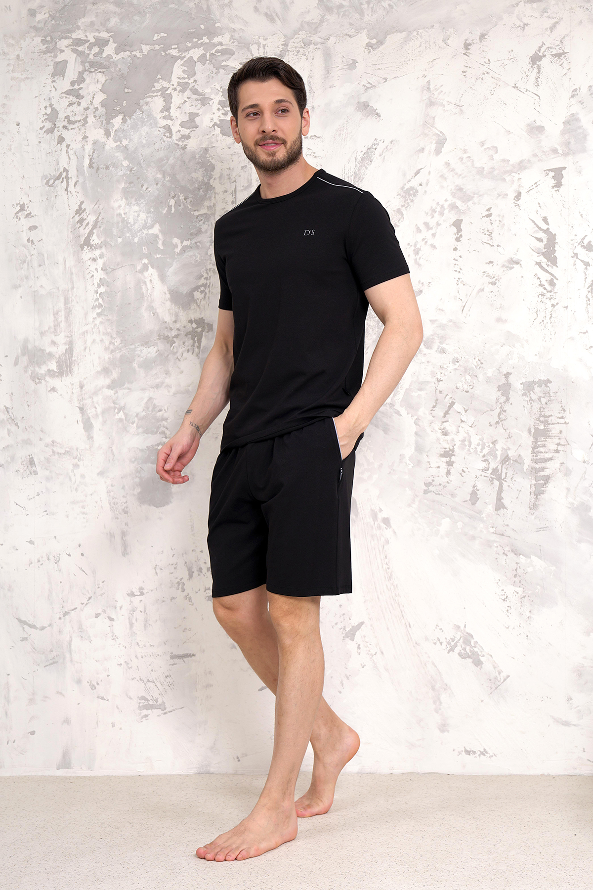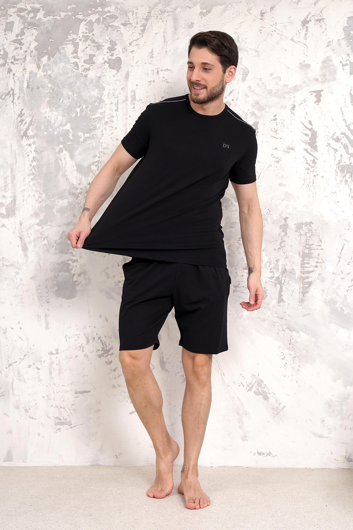 D's Damat Maschio Pamuk Şort Takım SİYAH