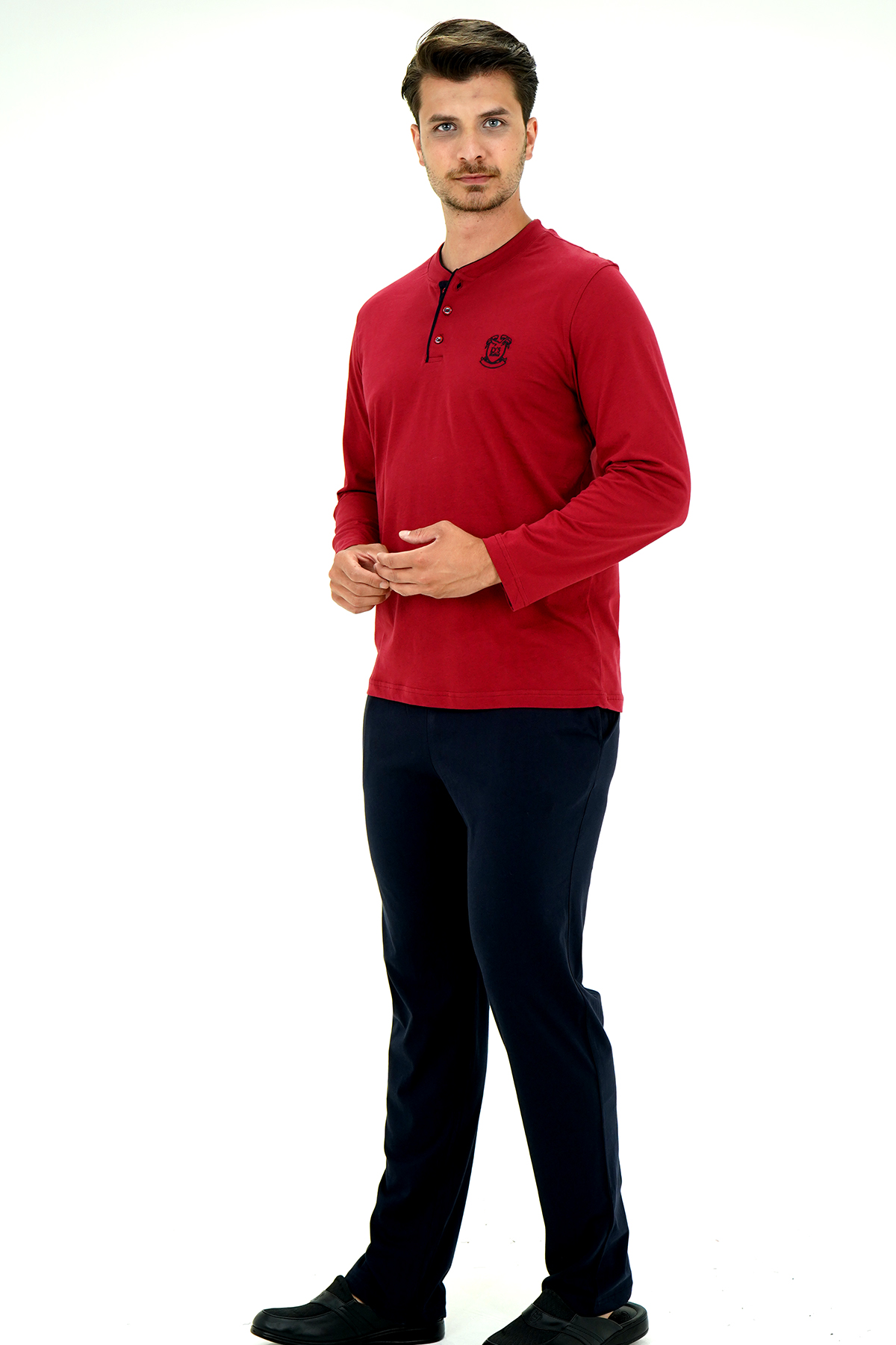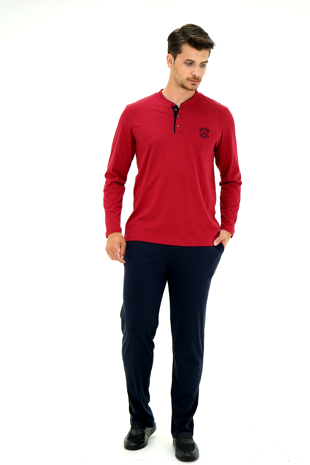 DS Damat Pijama Tk.Yarım Patlı Uzunkol BORDO