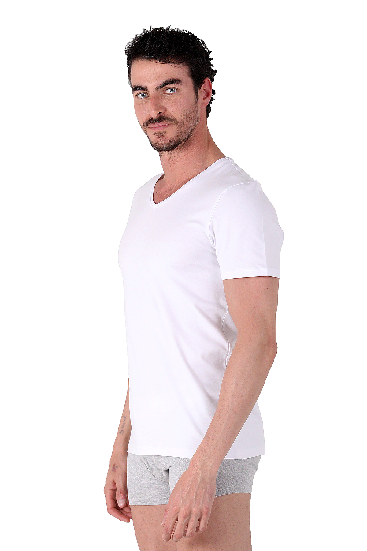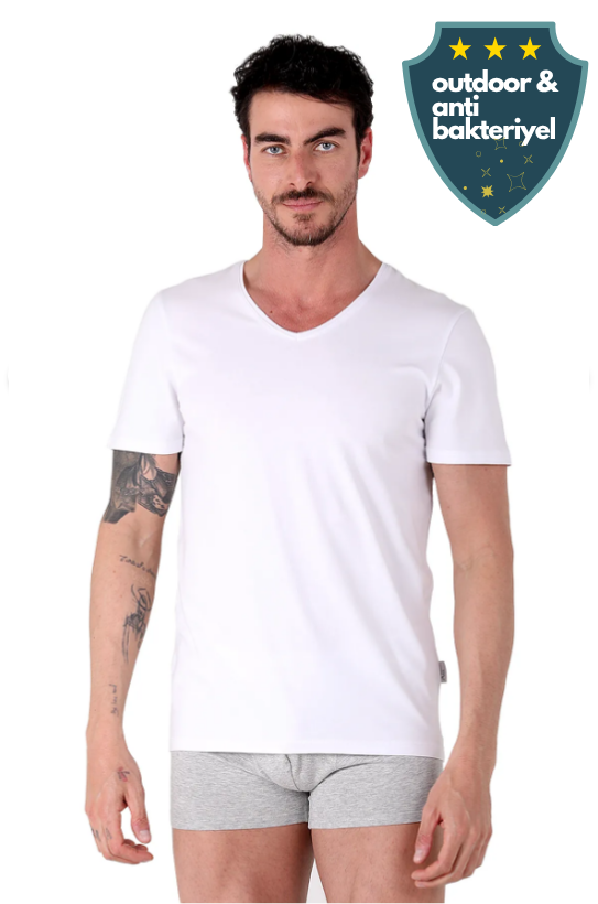 North Ice %92 Pamuk V‑Yaka Outdoor T-Shirt – Rahat Kesim, Antibakteriyel Kumaş BEYAZ