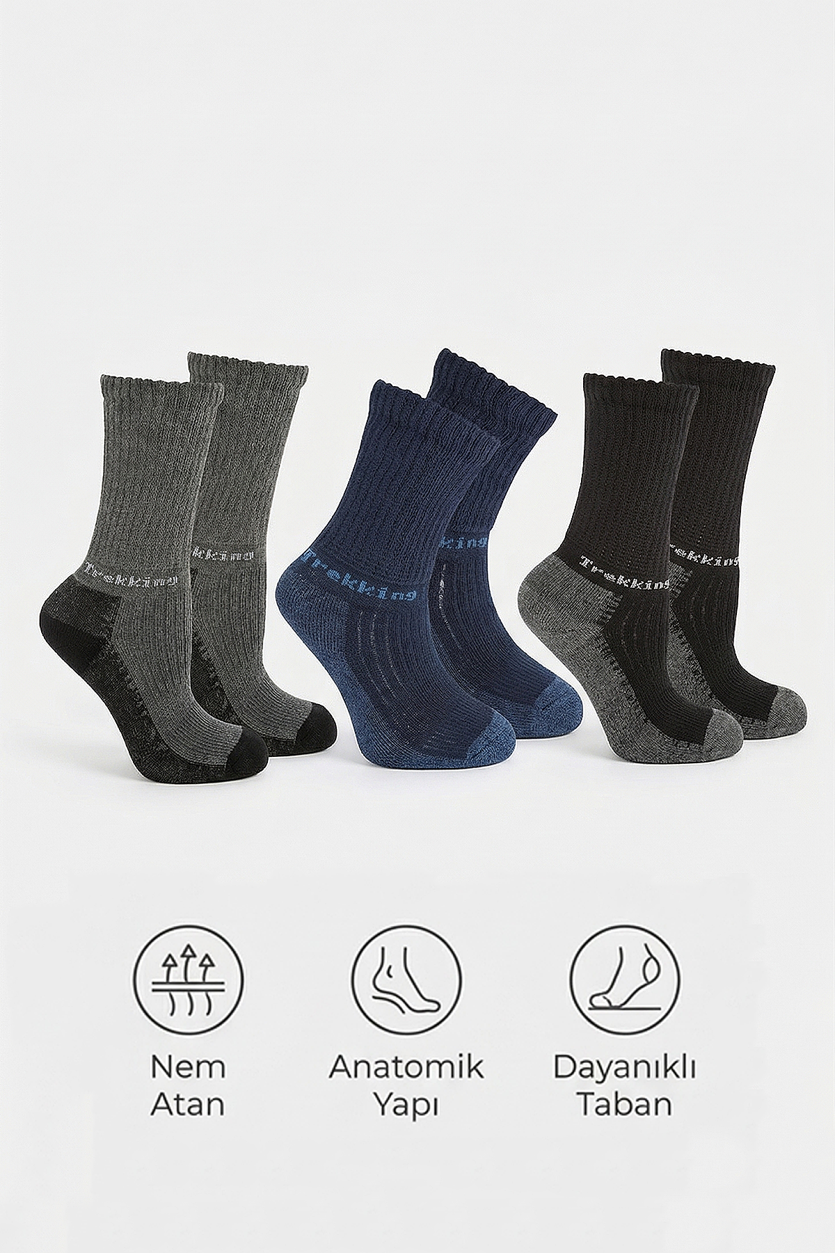 Paket İçeriği: 3 Çift (1 Adet Siyah, 1 Adet Lacivert, 1 Adet Antrasit).